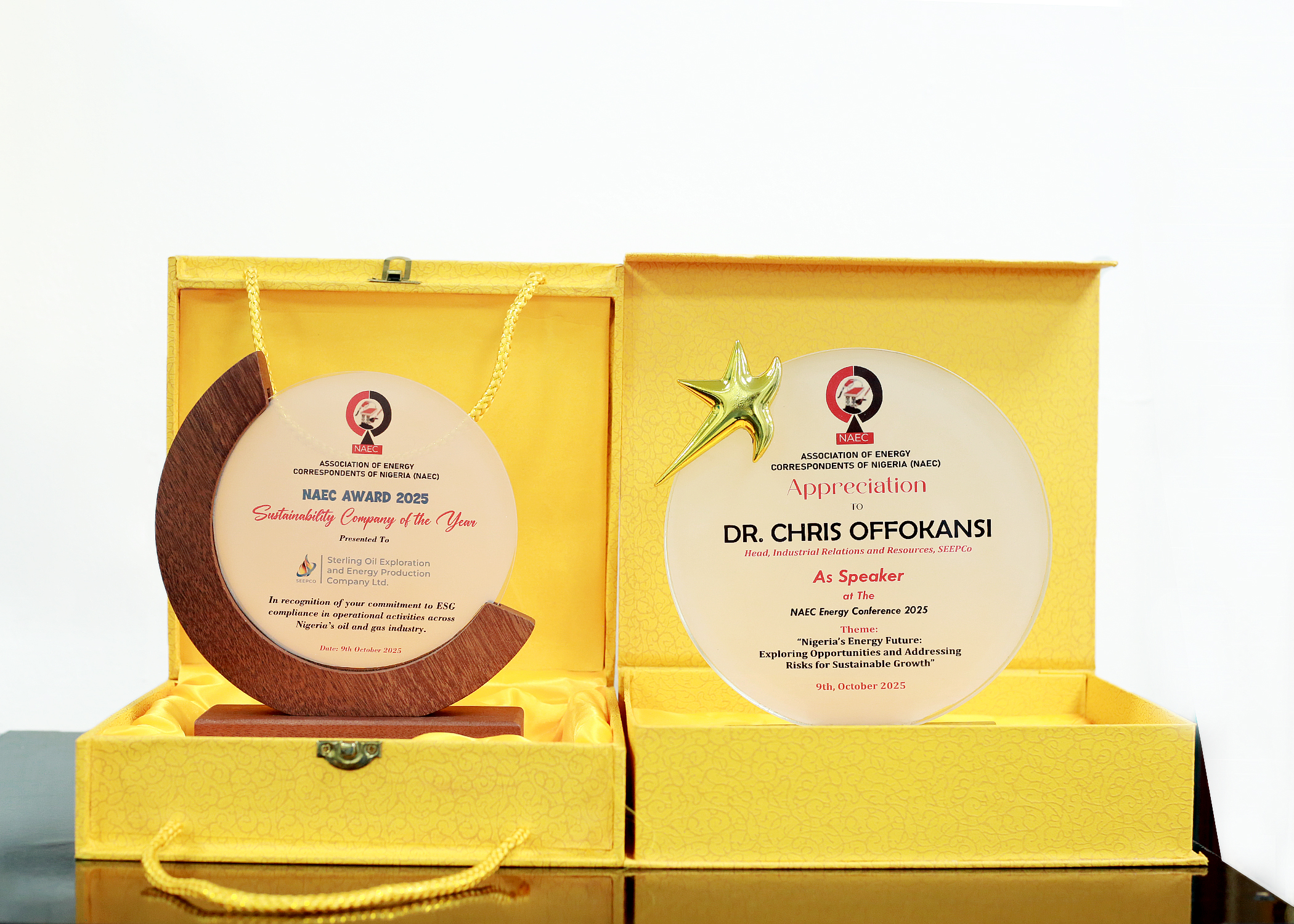 A showcase of the National Sustainability Achievement Awards 2025 plaques presented at the Nigeria ESG Summit