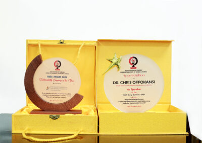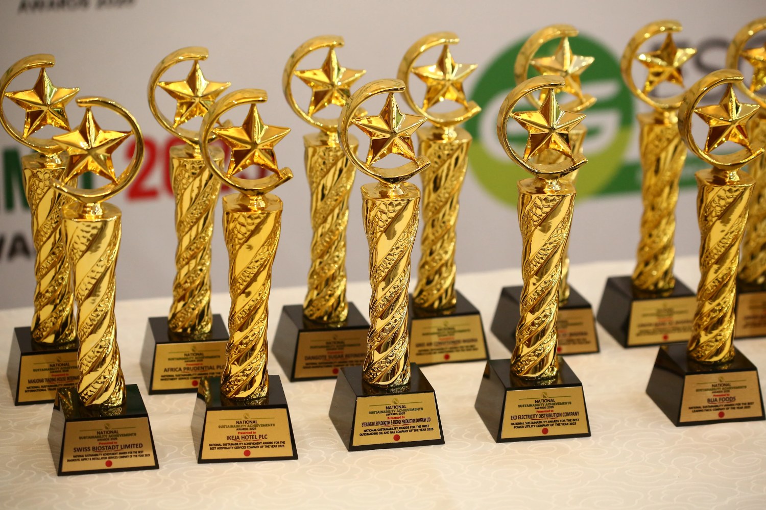 A showcase of the National Sustainability Achievement Awards 2025 plaques presented at the Nigeria ESG Summit