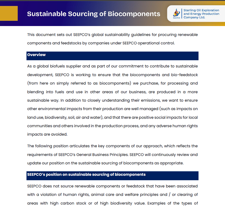 Sustainable Sourcing of Biocomponents